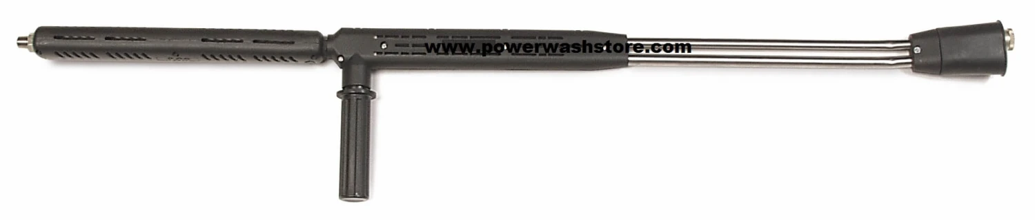 Premium Dual Lance with Stainless Steel inserted Seat. 3600 PSI, 10.5 GPM 302F, 1/4″ Tubing, Vented Grip, 1/4″ male inlet – female outlet. Includes Quick Coupler and Soap Nozzle.
