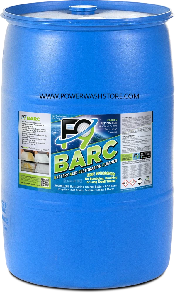 - Professional power washing is the preferred method of cleaning your concrete prior to the application of F9 BARC