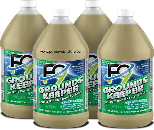 - F9 Groundskeeper is a highly buffered low pH hard surface maintenance cleaner to use after your initial degreasing, pre- cleaning or just hot water washing. F9 Groundskeeper has wetting agents and surfactants to help cut through contaminants. F9 Groundskeeper can be used on concrete, bricks, pavers, tile, most stone and other hard surfaces.